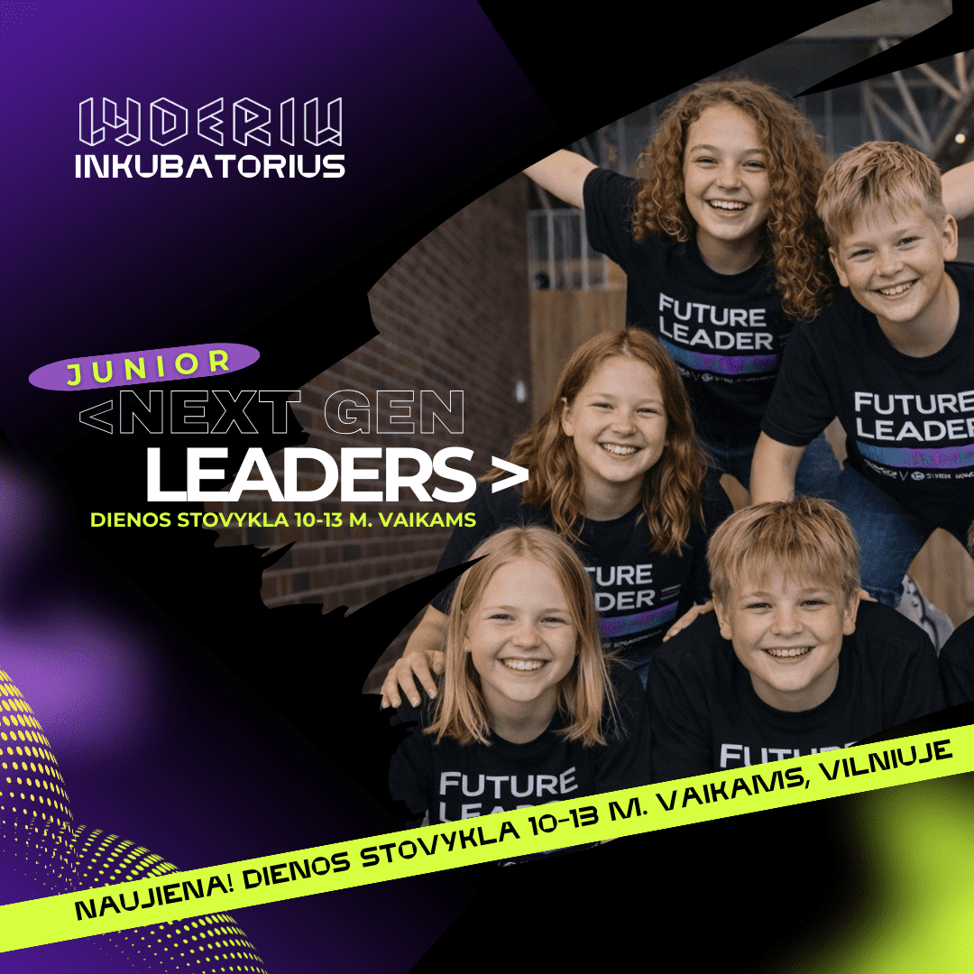 <JUNIOR NEXT GEN LEADERS 2026> – tai 5 dienų lyderystės dienos stovykla 10–13 m. moksleiviams, skirta ugdyti vidinę stiprybę, pasitikėjimą ir siekti savo tikslų.